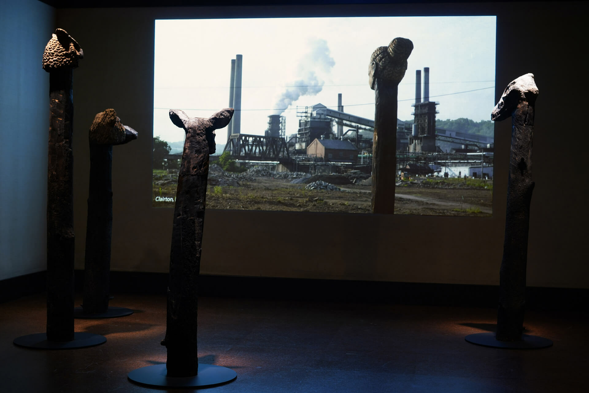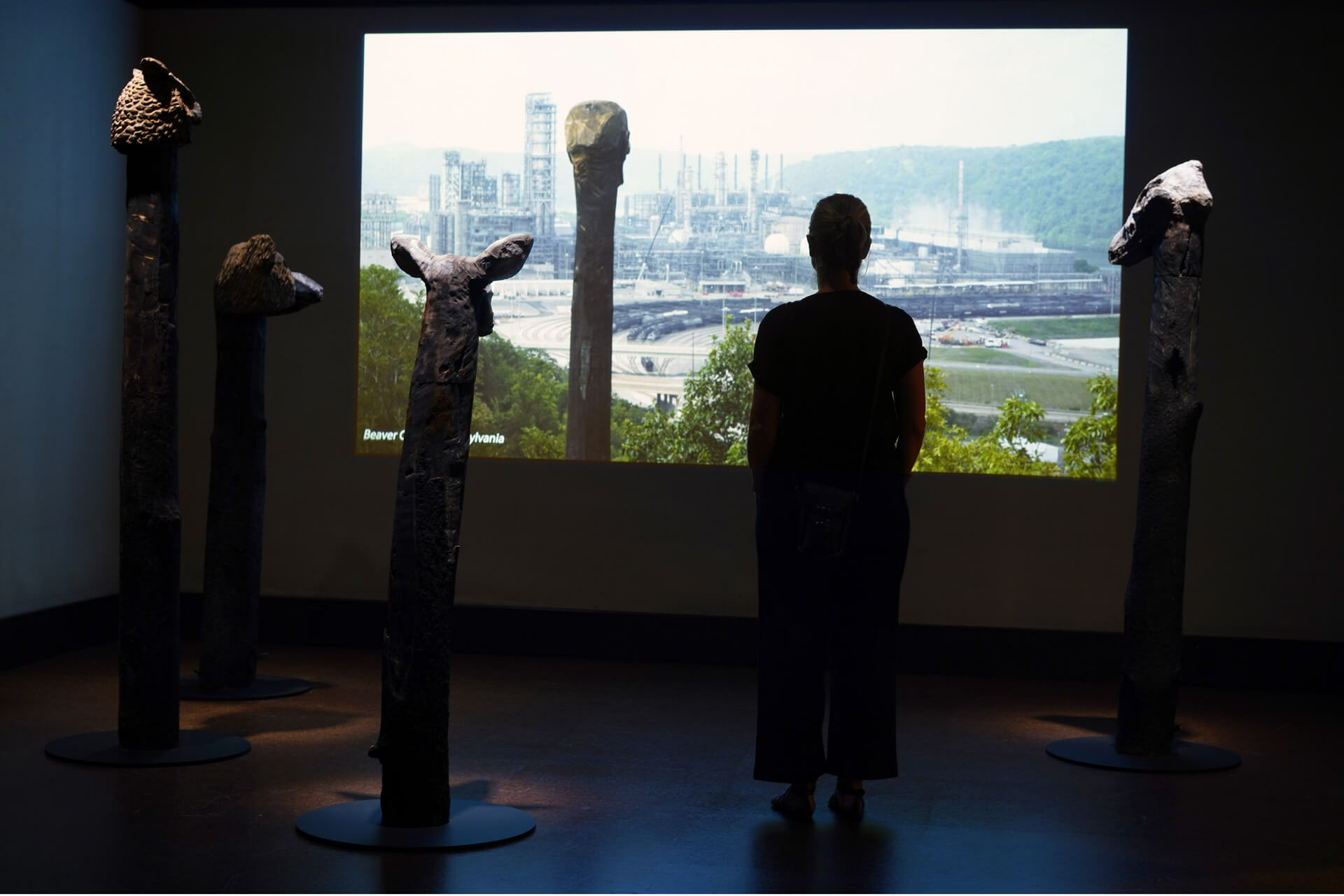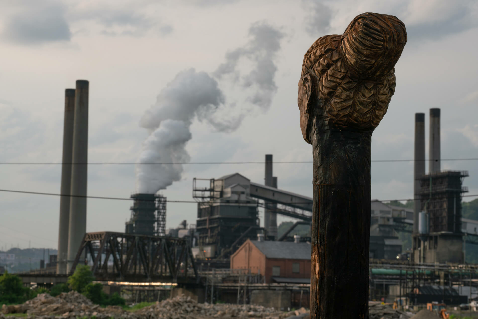 The campaign recently debuted in the Pittsburgh region, in an exhibition at the Carnegie Museum of Art and a week-long convening of more than 30 grassroots leaders from fenceline communities, featuring story and strategy-sharing, “toxic tours”, billboards, and the first permanent installation of an Externality monument. Hand-carved from a tree killed in climate-fueled wildfires, it is one of dozens of these monuments being installed in ceremonies across the country, at sites of industrial harm.