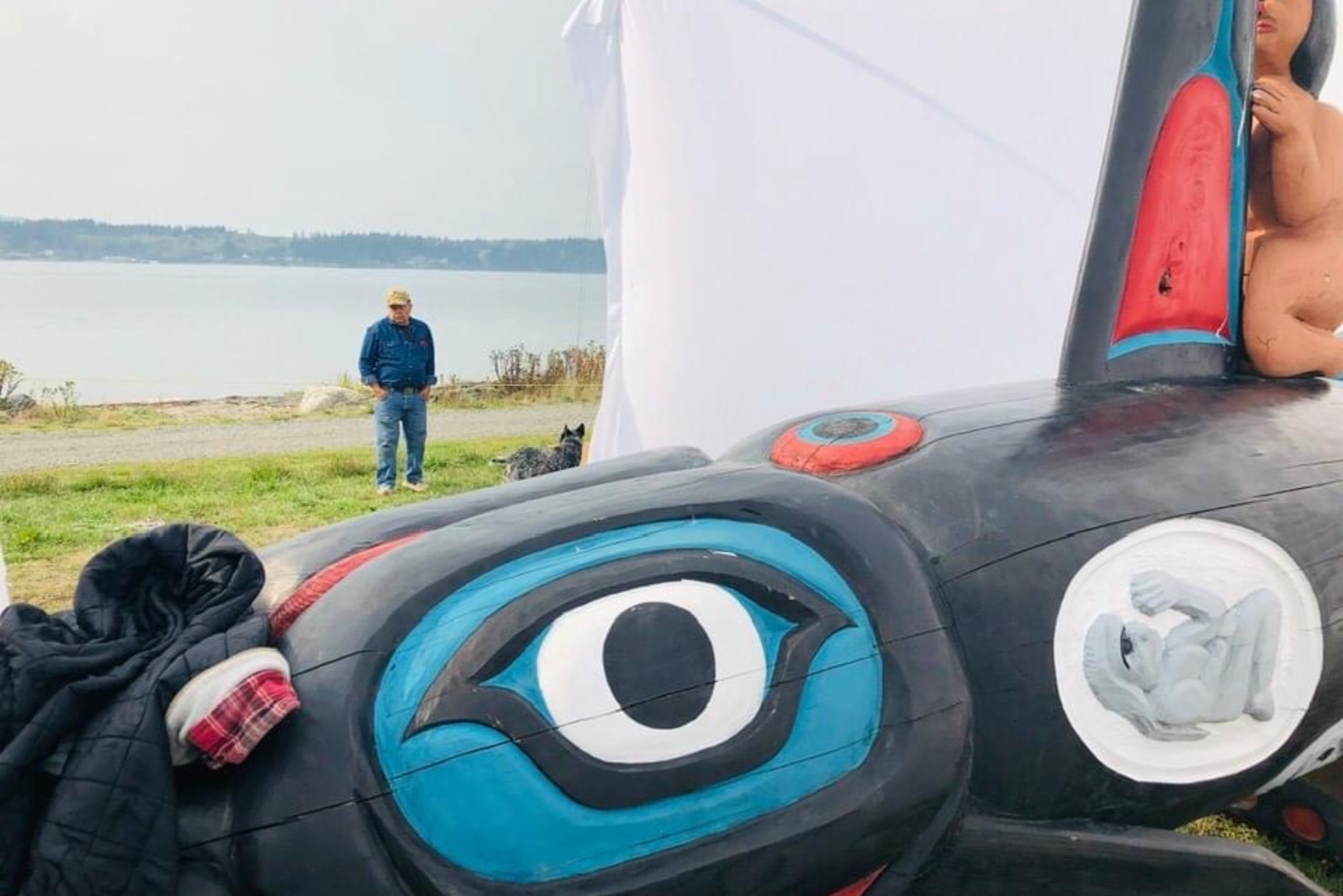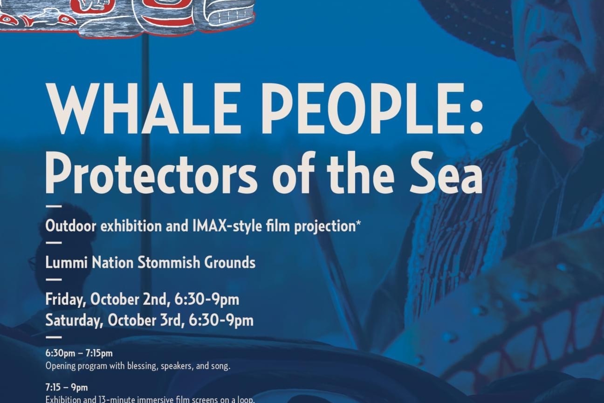 Much gratitude to all involved, including the film’s narrators, Chief Bill James (Lummi), Amy George (Tsleil-Waututh), and Jewell James (Lummi), as well as Lummi tribal member Freddie Lane, Jewell and Doug James of the House of Tears Carvers, Former Lummi Nation Chairman Jay Julius, Otong Durahim, the Indigenous artist from Indonesia who worked with us to design and fabricate this traveling venue, and underwater videographer Florian Graner. We raise our hands to you.