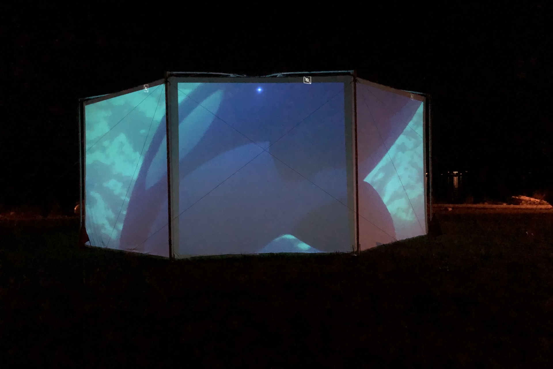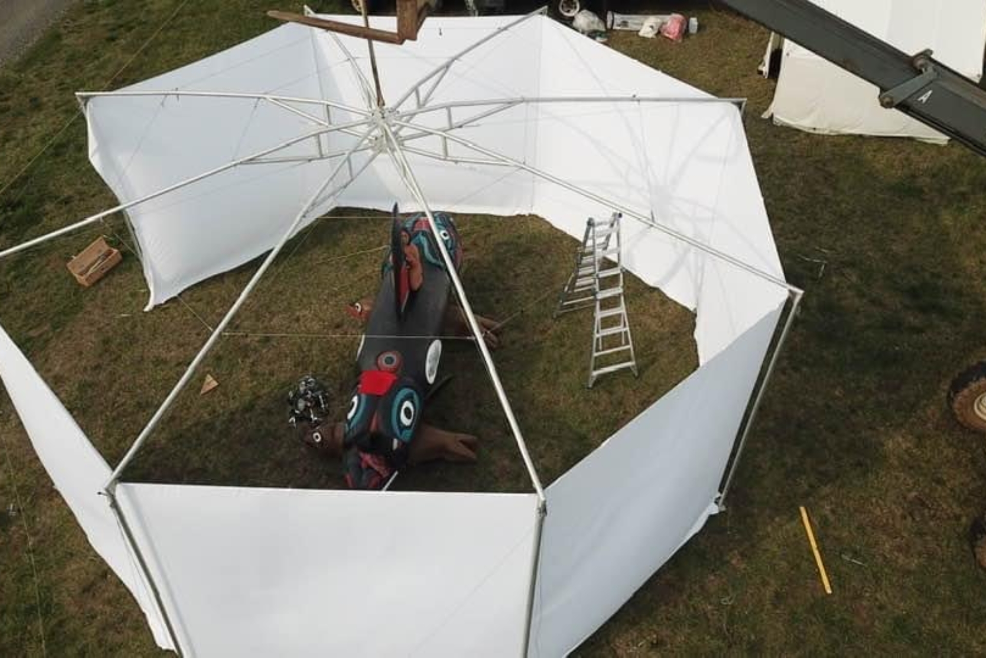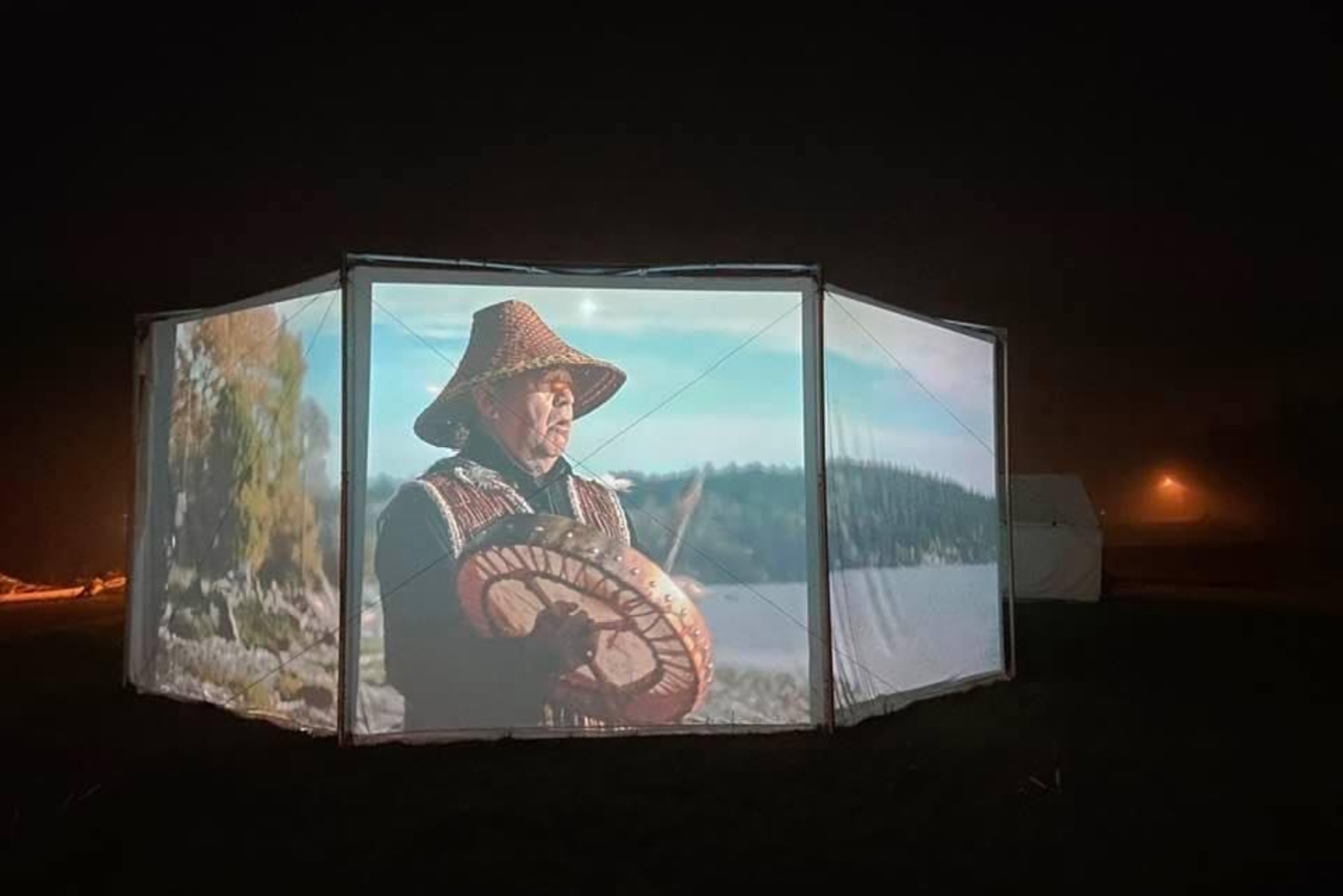 This weekend we debuted our new traveling, outdoor exhibition and IMAX-style film projection venue, with a presentation of “Whale People: Protectors of the Sea“, featuring a 3,000 pound killer whale totem and an award-winning film that tells the story of the environmental emergency through the figure of the orca.